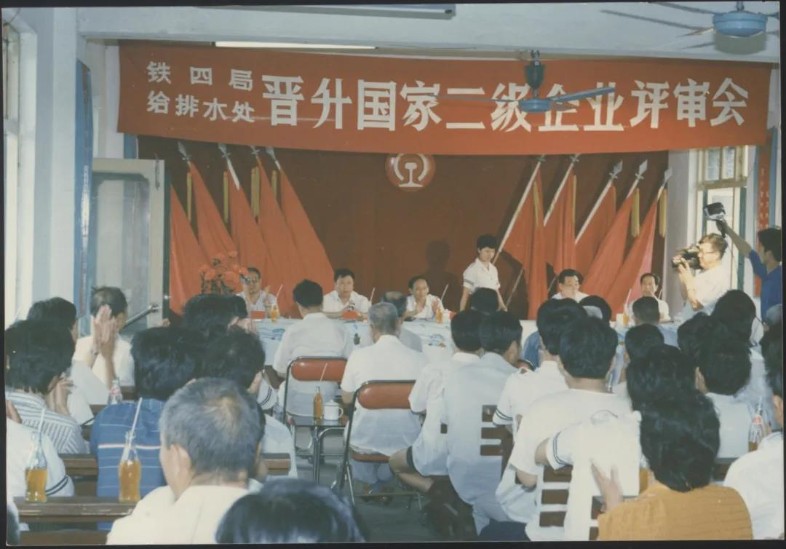 企業(yè)升級(jí)是國(guó)家“七五”期間的中心任務(wù),圍繞著“抓管理、上等級(jí)、全面提高素質(zhì)”的工作要求,全處廣泛宣傳發(fā)動(dòng)。從加強(qiáng)基礎(chǔ)工作入手,成立領(lǐng)導(dǎo)小組和企管辦,圍繞安全、質(zhì)量、效益等重點(diǎn),廣泛開展標(biāo)準(zhǔn)化、計(jì)量、能耗、檔案、普法、全面質(zhì)量管理、班組建設(shè)等專項(xiàng)達(dá)標(biāo)升級(jí)。機(jī)關(guān)各部門、各單位對(duì)照“方針目標(biāo)任務(wù)展開表(類似于現(xiàn)在管理矩陣、責(zé)任清單)開展資料“補(bǔ)強(qiáng)”工作。1990年,給排水工程處通過鐵道部評(píng)審組考核驗(yàn)收,成為全局第一家晉升國(guó)家二級(jí)企業(yè)的單位,全處職工每人都晉升了一級(jí)標(biāo)準(zhǔn)工資,更重要的是剛剛成為獨(dú)立法人不久的給排水處整體管理理念和綜合素質(zhì)有了顯著提升。處相繼榮獲全國(guó)五一勞動(dòng)獎(jiǎng)狀、全國(guó)先進(jìn)施工企業(yè)等榮譽(yù),成為名噪一時(shí)的鐵四局“四小龍”之一,無論是企業(yè)管理、經(jīng)濟(jì)效益還是員工風(fēng)貌,都成為全局標(biāo)桿。