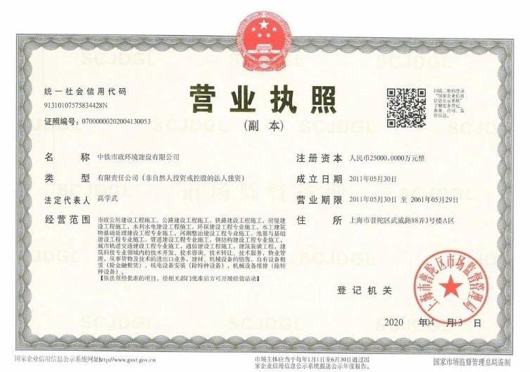 2019年12月,公司整建制由中鐵上海局并入中國(guó)鐵工建設(shè)有限公司。2020年4月13日,公司更名為中鐵市政環(huán)境建設(shè)有限公司,完成變更注冊(cè)登記。公司此次重組,源自于國(guó)家生態(tài)環(huán)境治理領(lǐng)域和企業(yè)改革發(fā)展的共同“作用力”。