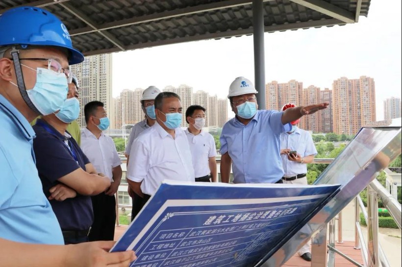 6月17日,武漢市副市長張文彤、副秘書長陳躍慶到黃家湖污水處理廠三期擴建工程項目調研指導工作,市政府重點辦、市自然資源和規劃、環保、農業農村局、市水務局等相關人員陪同。